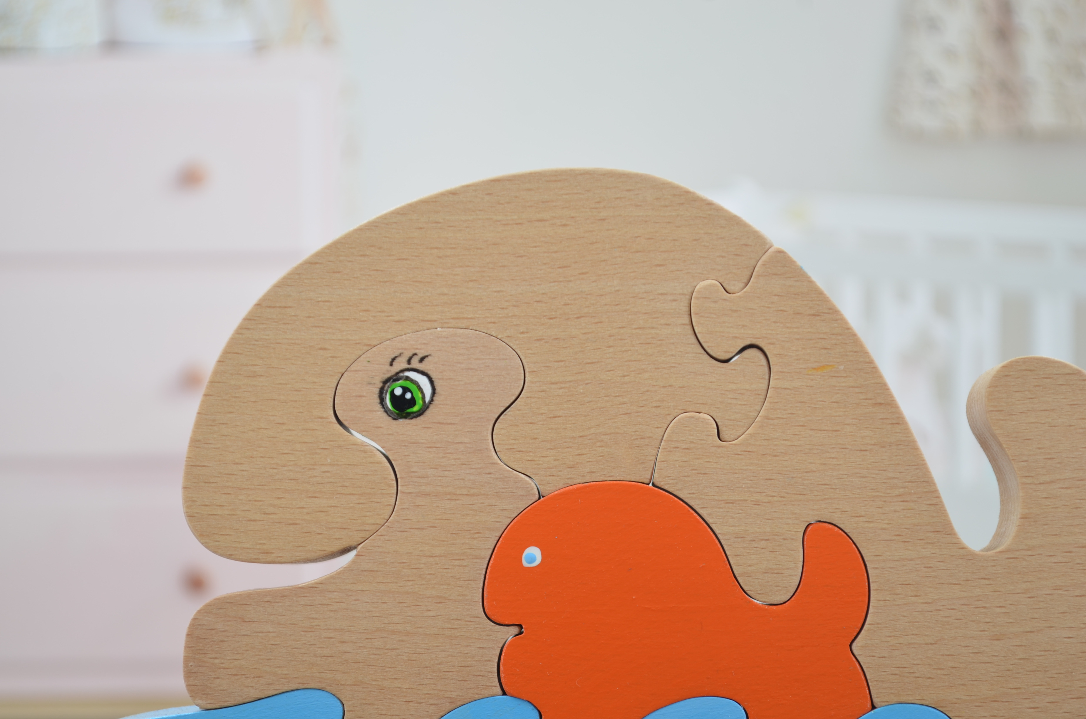 Voguant sur l’océan au gré des flots, la baleine aux longs cils et au grand sourire semble très heureuse...et pour cause, elle ne navigue pas seule mais avec son petit baleineau.
