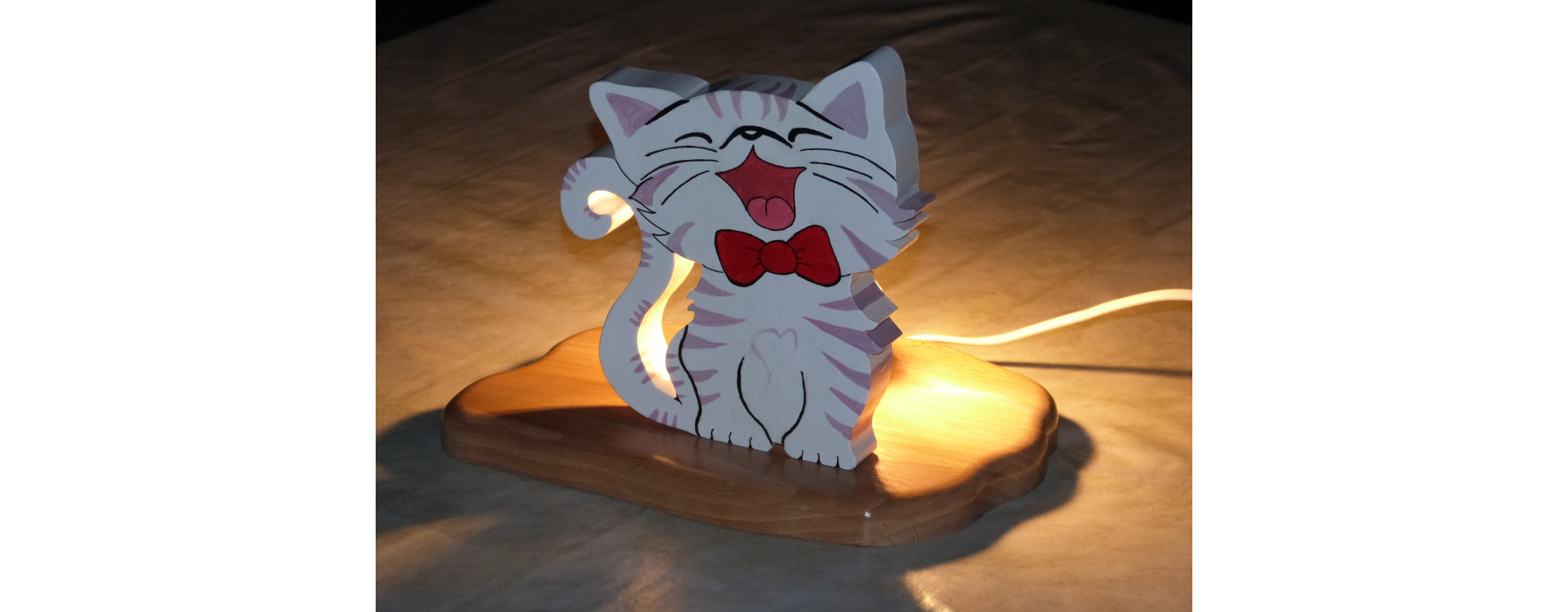 Cat lamp in beech wood — handcrafted night light for children's room